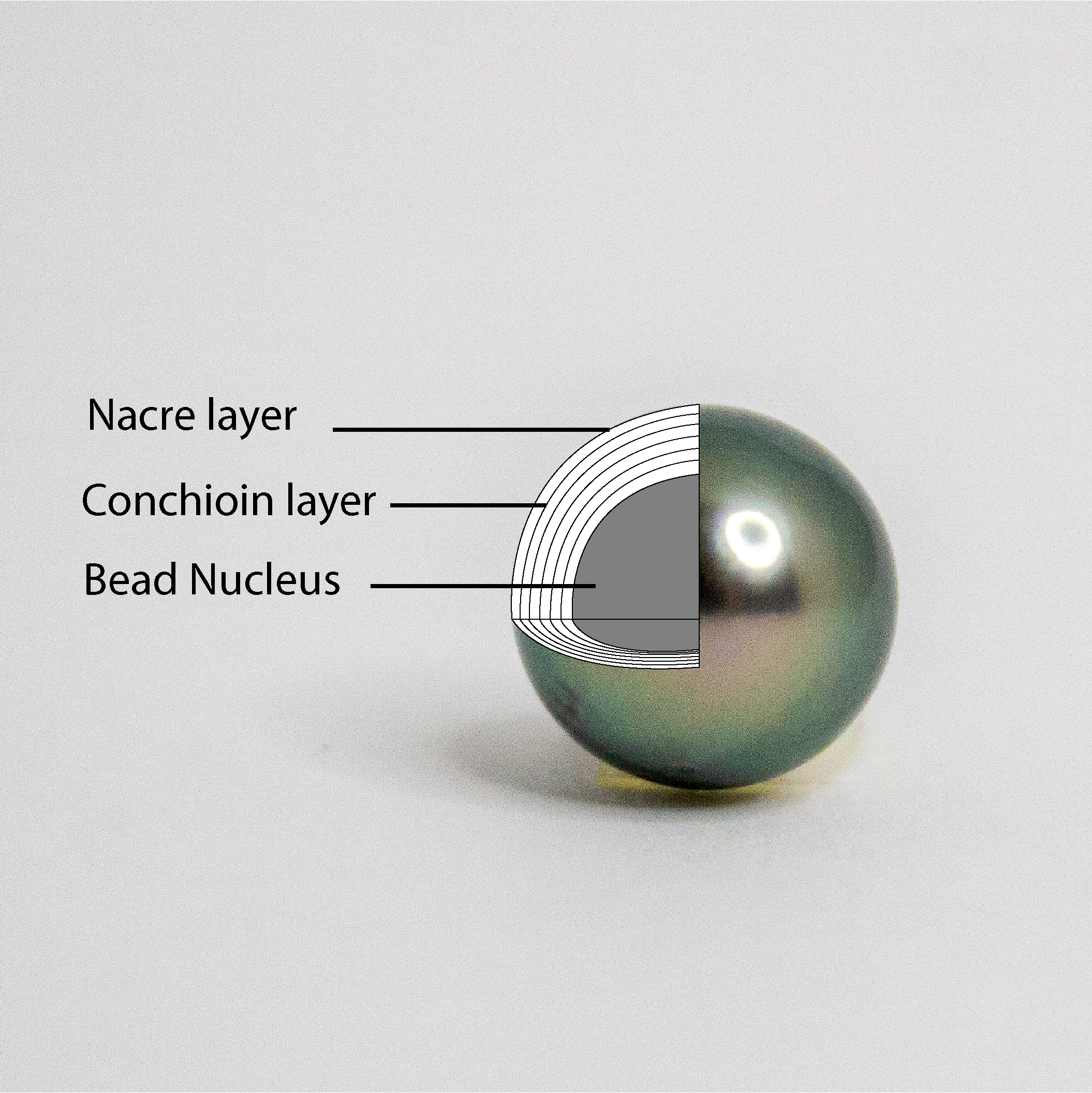 Tahitian cultured pearls MUST have a minimum nacre depth of 0.8mm per side (so 0.16mm total) to qualify for export. The average nacre thickness for Tahitian pearls remains at 1.0mm depth or more.