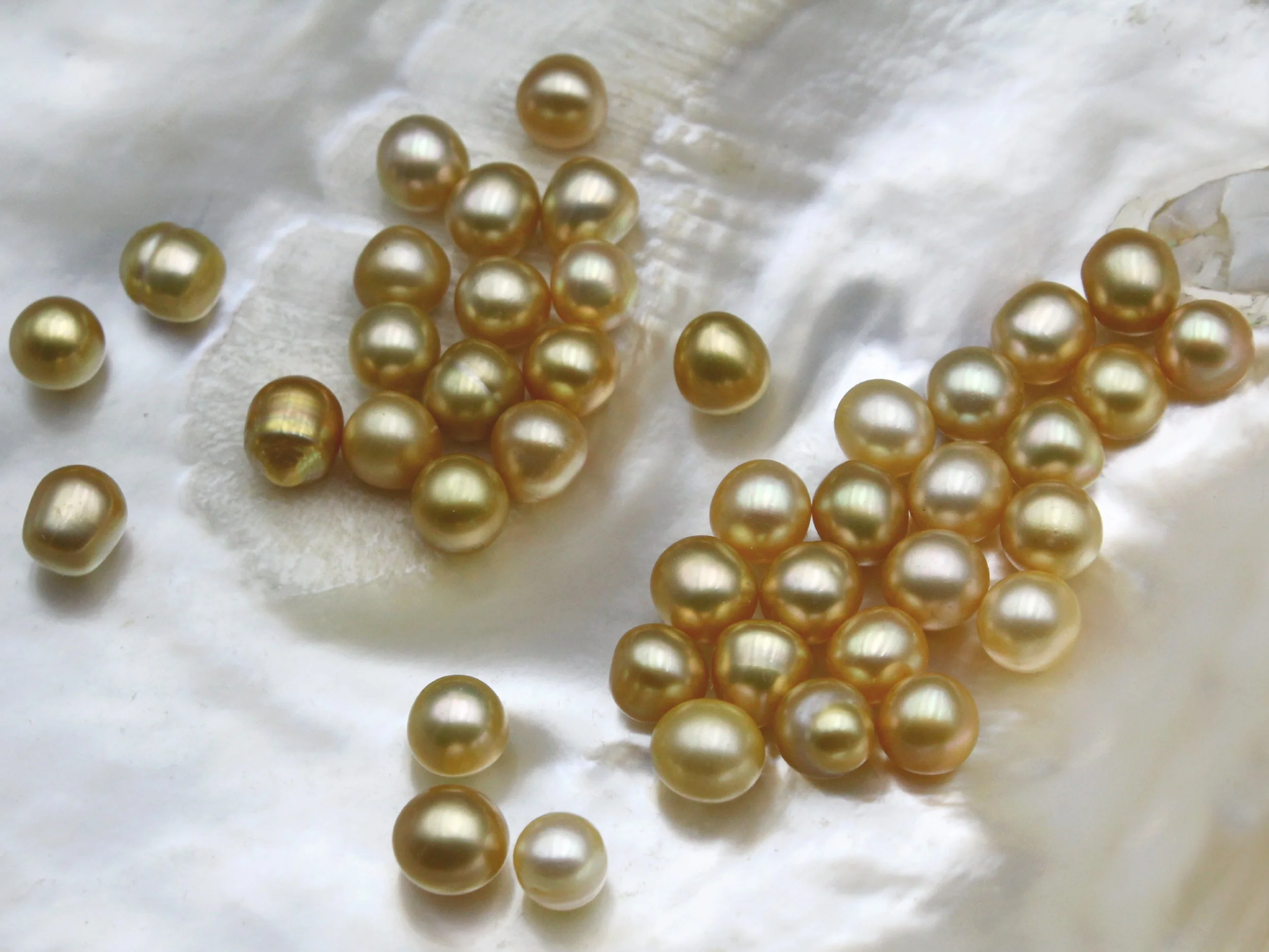 The gold-lipped South Sea pearl oyster produces pearls displaying a wide range of colors, from creamy white and champagne to yellow and rich gold. While each hue is beautiful, gold is typically considered the most valuable.